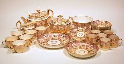 Comprising a teapot, sugar bowl, waste bowl, six coffee cans, six tea cups, two plates and ten saucers. (31).