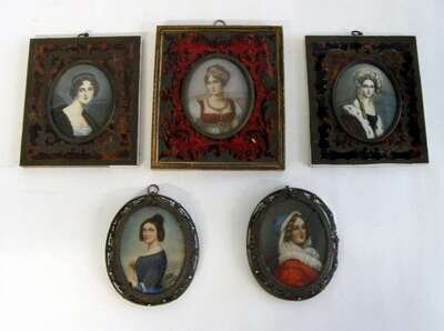 Group of five Continental miniature portraits 19th/20th century