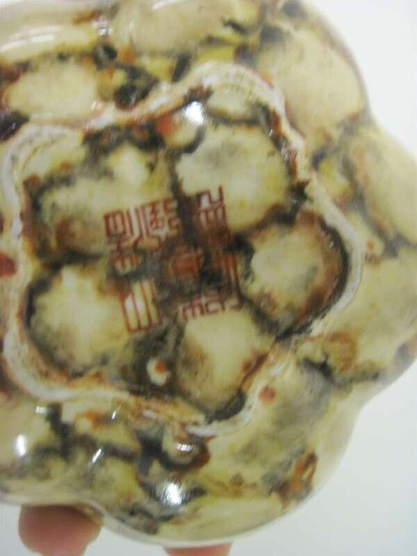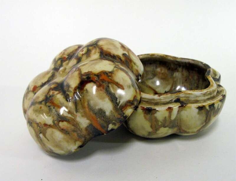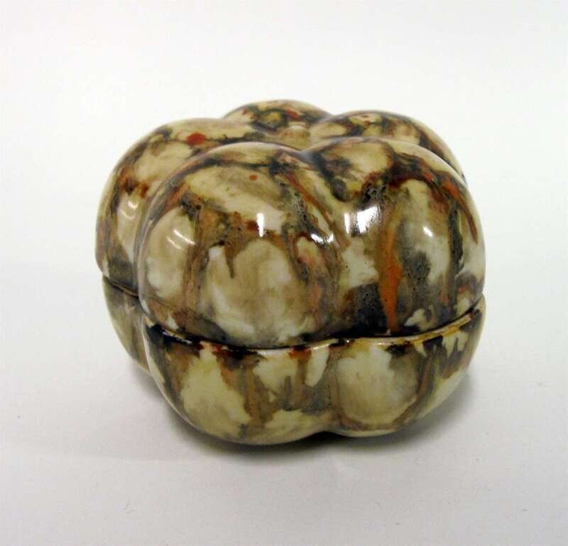 Chinese marble glazed porcelain melon form box qianlong mark, republic period or later