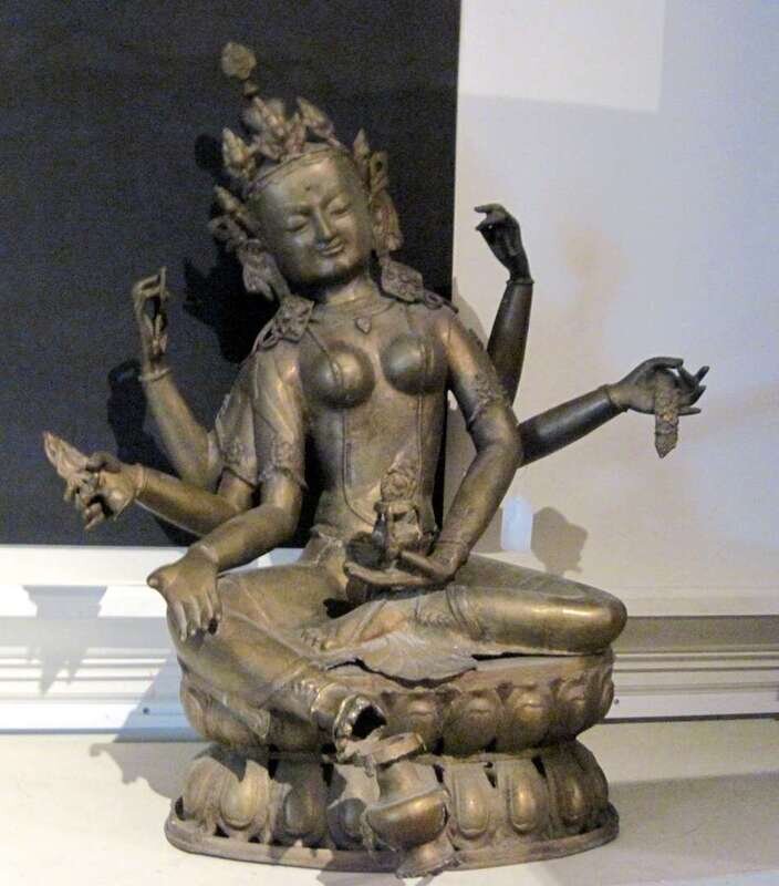 Female deity raised on double lotus throne.