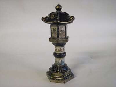 Japanese gilt and blue glazed earthenware satsuma lantern model late 19th century