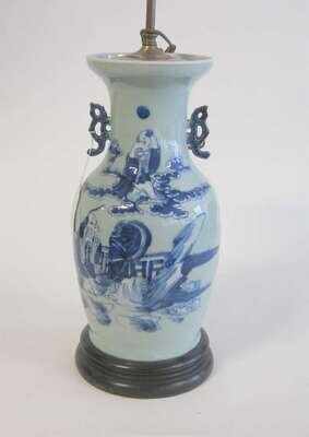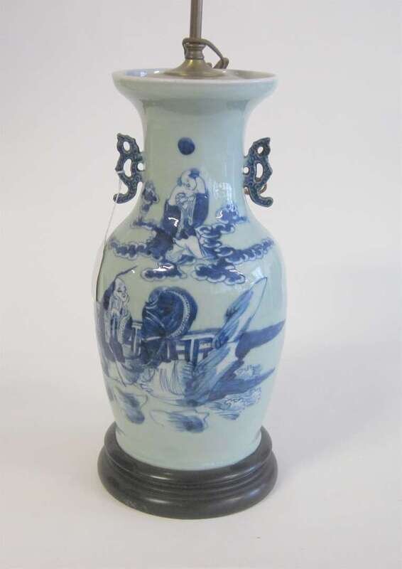 Of baluster form, with two pierced side handles; now mounted as a lamp.