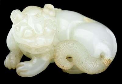 Chinese white jade carving of a mythical beast 18th / 19th century