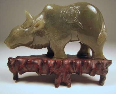 Chinese celadon jade buffalo ming dynasty mark, 19th / 20th century