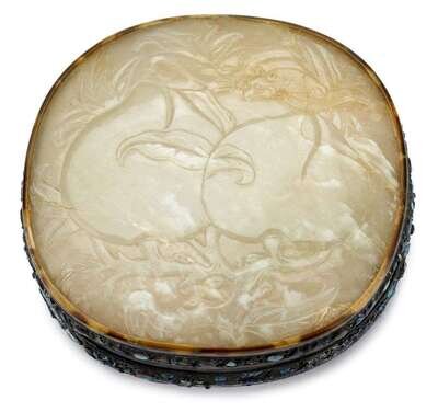 Large Chinese jade mounted tortoiseshell and enameled silver box 19th century