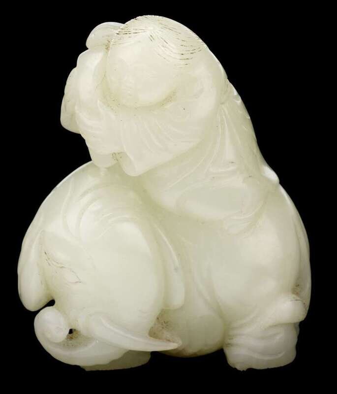 Good Chinese light celadon jade 'elephant and boy' grouping 18th century