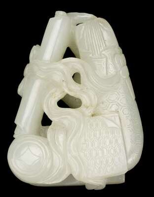 Chinese white jade double scroll pendant 19th century