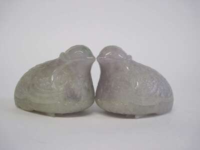 Pair of Chinese jade quail-form boxes late qing dynasty