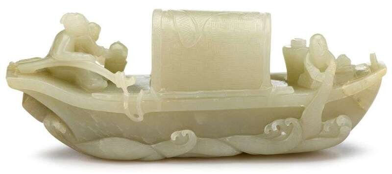 Chinese carved celadon jade sampan