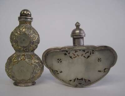 Two Chinese white jade and silver plated snuff bottles 20th century
