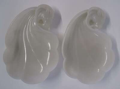 Pair of Chinese Mughal style white jade dishes modern