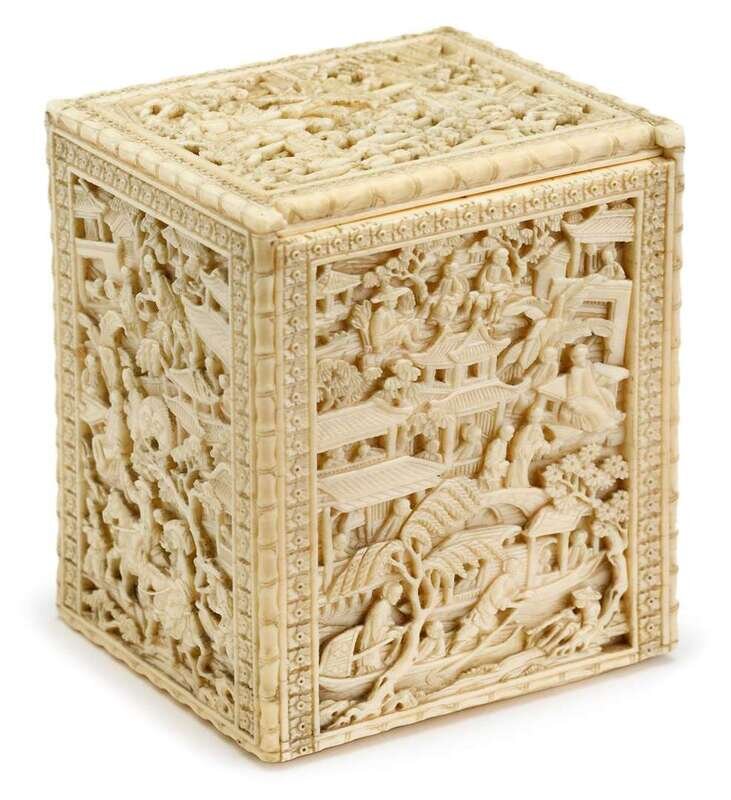 Large Chinese carved elephant ivory tea caddy canton, early 19th century