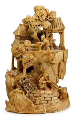 Chinese carved elephant ivory mountain dated 1740, qing dynasty