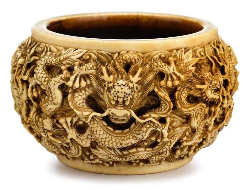 Chinese carved elephant ivory dragon bowl qianlong seal mark
