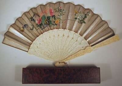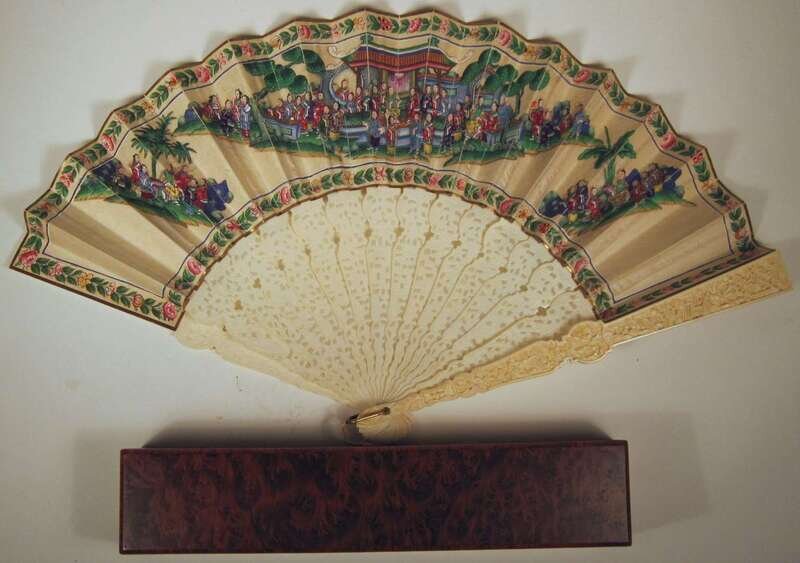 Chinese carved elephant ivory and painted fan canton, 19th century