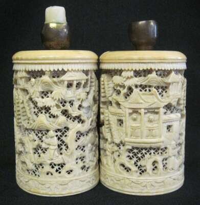 Pair of Chinese elephant ivory reticulated candle stands canton, late 19th century