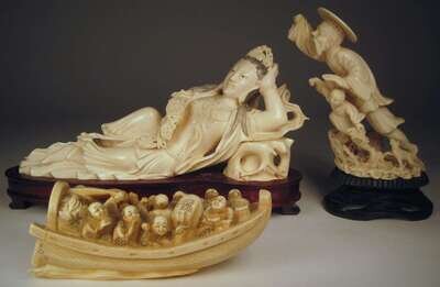 Three East Asian elephant ivory carvings