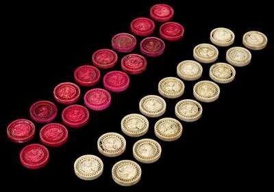 A complete set of Chinese carved and stained elephant ivory chess tokens qing dynasty