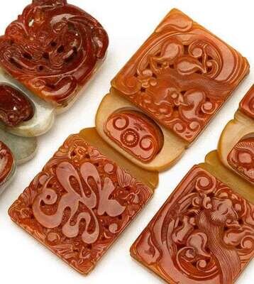 The two-part buckle carved to the raised and openwork faces with a coiling qilong dragon and a shou symbol surrounded by fu bats; with a stylized lingzhi hook.