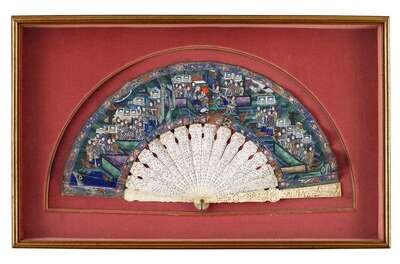 Chinese elephant ivory and painted paper fan canton, late 19th century