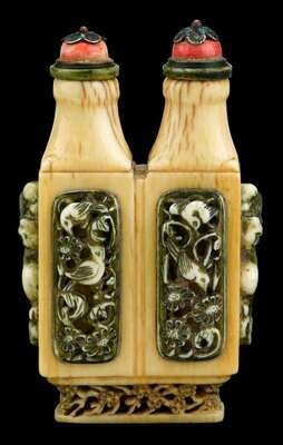 Chinese carved and stained elephant ivory double snuff bottle 18th / 19th century
