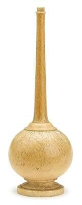Tall slender neck over wide body, raised on conforming circular foot.