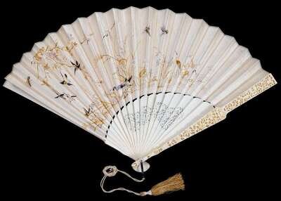 Large Chinese elephant ivory and embroidered silk fan 19th / 20th century