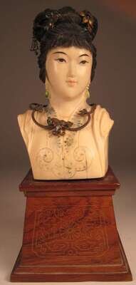 Chinese polychromed elephant ivory and enameled silver mounted bust