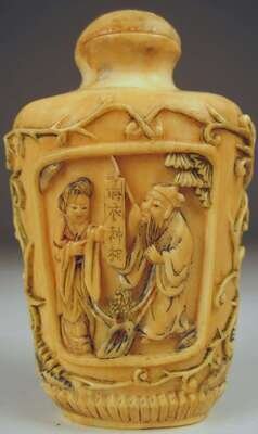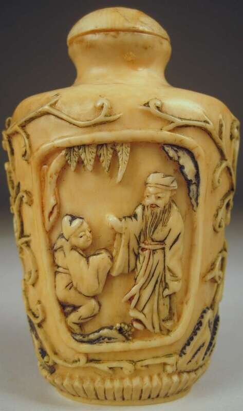 Chinese polychromed carved elephant ivory snuff bottle early 19th century