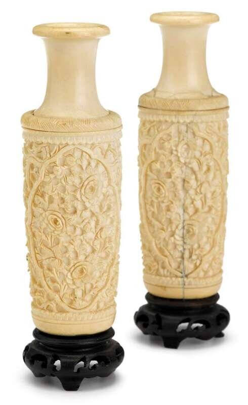 Pair of Chinese carved elephant ivory vases canton, late 19th century