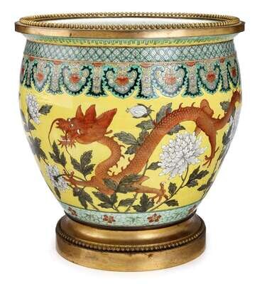 Chinese Dowager-style porcelain and gilt metal mounted jardiniere early 20th century