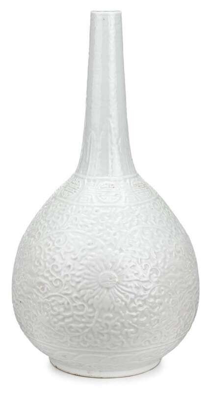 Tall Chinese molded white glazed porcelain vase impressed qianlong mark, qing dynasty
