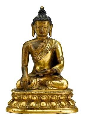 Good Sino-Tibetan gilt bronze figure of Sakyamuni 17th / 18th century