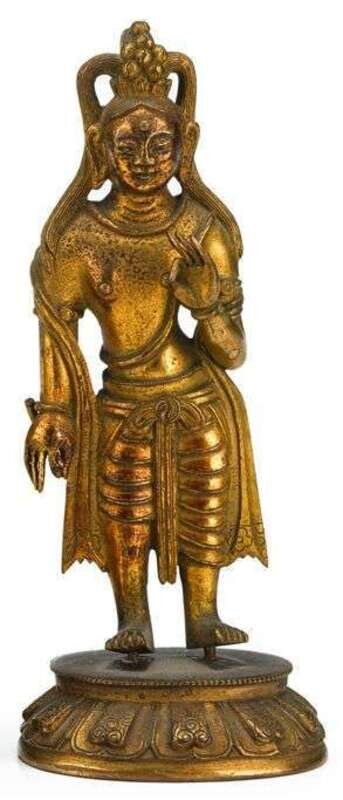 Tibetan gilt bronze figure, possibly Manjusri 19th century