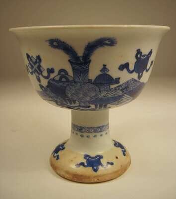 Deep U shape basin over cylindrical base, raised on circular foot.
