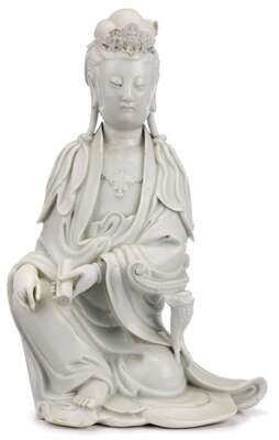 Large and Impressive Chinese blanc de chine Quanyin impressed seal to back, qing dynasty