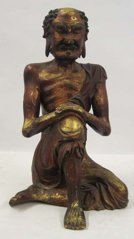 Large Chinese carved giltwood luohan figure qing dynasty