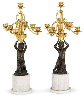 Fine pair of French patinated and gilt bronze candelabra late 19th century, signed vauvray freres