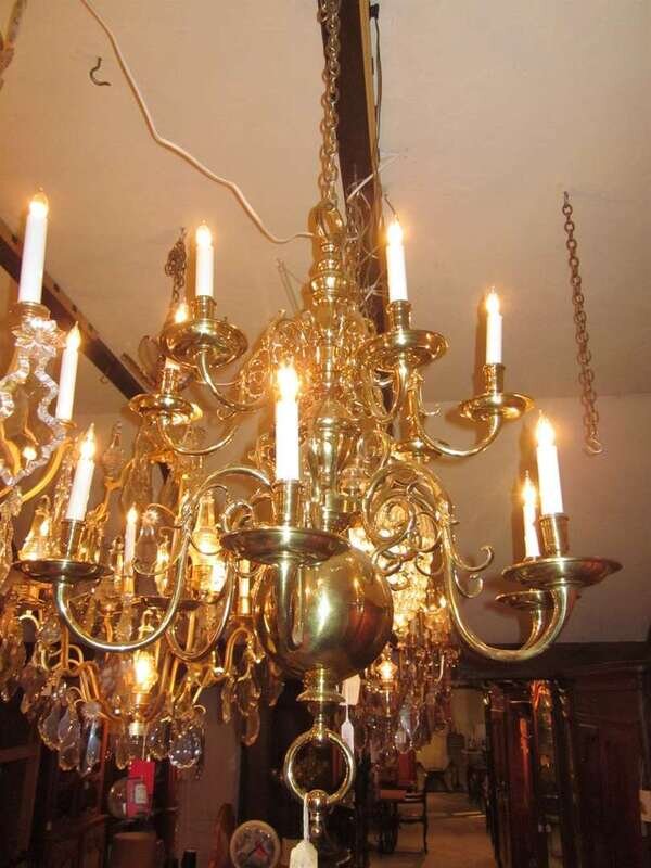 Large Dutch style brass twelve-arm chandelier