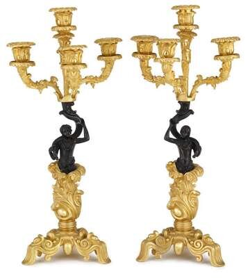 Pair Louis XVI style gilt and patinated bronze candelabra late 19th century, in the manner of clodion