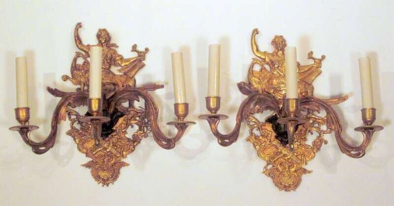 Pair of Louis XVI style gilt and patinated bronze wall sconces late 19th century