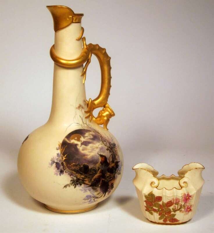 Royal Worcester cream ground porcelain ewer late 19th century