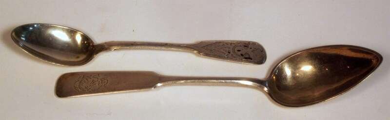 One a serving spoon, Antonin Riedel, Warsaw, 1891; the other a Russian dessert spoon, assaymaster Ivan Yefimovich Konstantinov, Moscow, 1875.