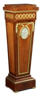 Continental mahogany, gilt metal mounted and marble inset pedestal