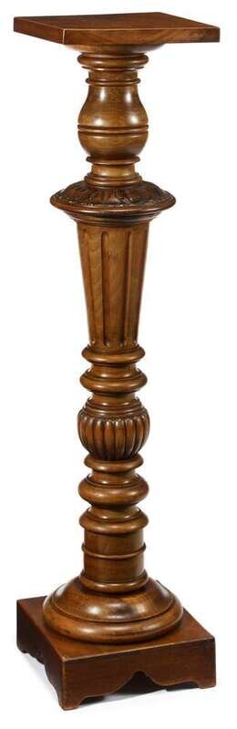 The square top over turned fluted and gadrooned fluted column raised on square base.