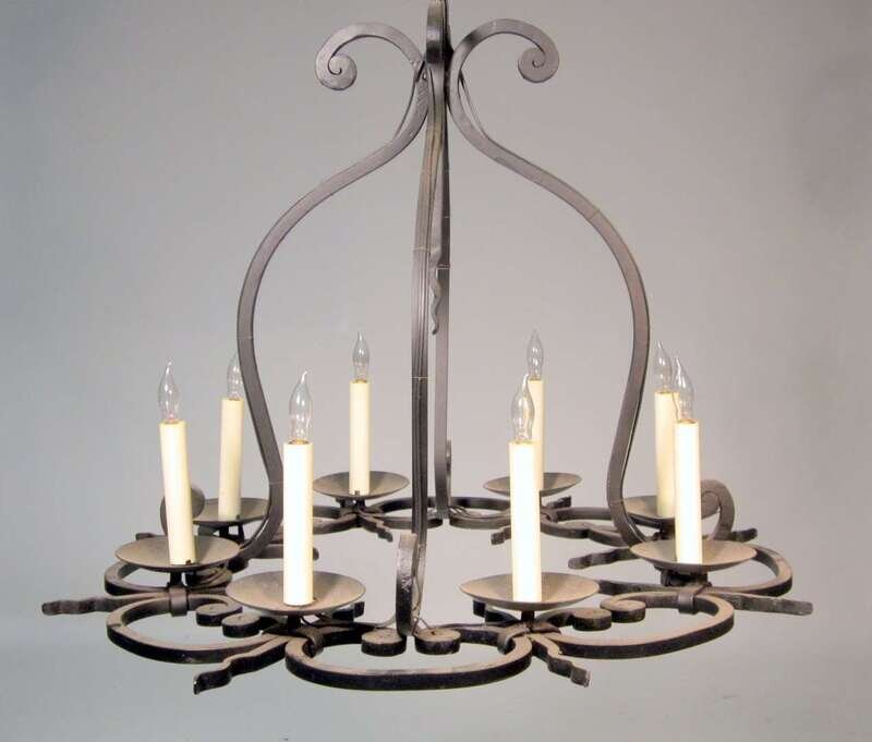 Wrought iron baroque style eight-arm chandelier