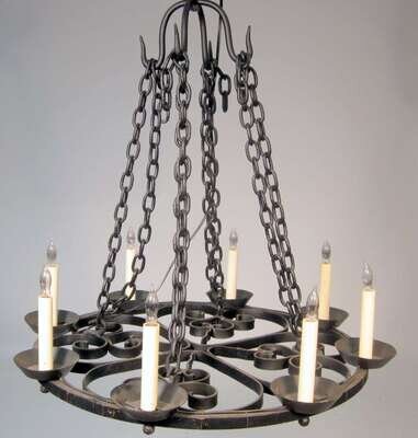 Wrought iron baroque style eight arm chandelier