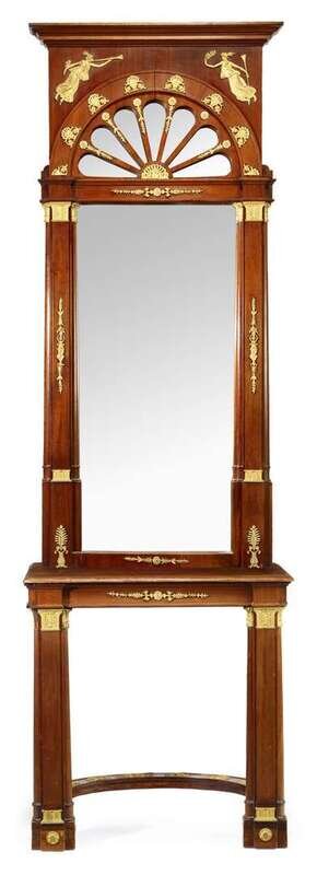Empire style mahogany and gilt metal mounted pier mirror and console table late 19th/early 20th century