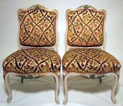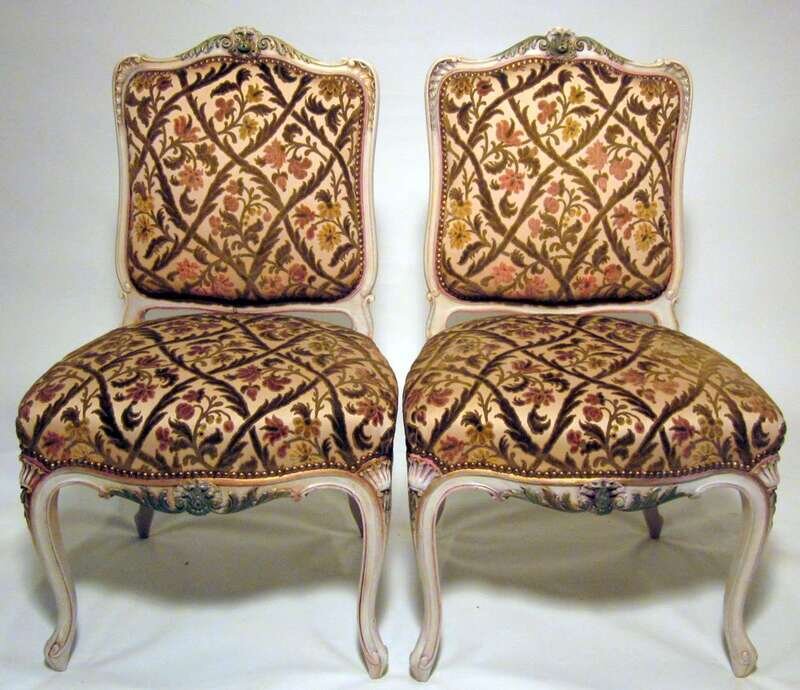 The shaped upholstered back within conforming channel molded frame, over stuff over seat, raised on cabriole legs. (2).