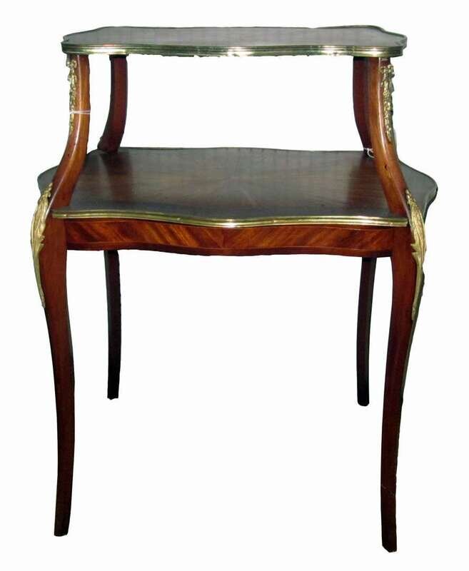 Louis XVI style mahogany gilt metal mounted and inlaid etagere